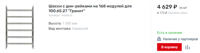 Степень защиты IP66 нам совершенно не нужна, но щита без такого уровня защиты, для которого есть шасси с DIN рейками, я не нашёл. Вот отдельно продаваемое шасси с DIN рейками: