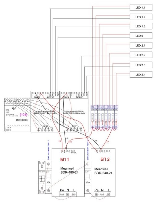 Вот самое типичное, схема подключения светодиодных лент, там всегда всё более-менее сложно: