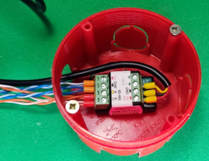 Теоретически можно вести кабель такого датчика 1-wire прямо от модуля в щите, обычно пишут про максимальную длину кабеля до 30 метров. Но так уж исторически сложилось, что я категорически не доверяю датчикам 1-wire, и во всех проектах рисую где-то у пола монтажную коробку, закрытую заглушкой, в которой размещается переходник с шины Modbus RS485 (для системы Wirenboard) или CAN (для системы Larnitech) на 1-wire, таким образом длина кабеля датчика температуры составляет не более 60см, и всегда можно заменить и датчик, и модуль-переходник. Вот модуль Wirenboard M1W2 v.3 для подключение на шину Modbus RS485 двух датчиков температуры пола стандарта 1-wire.