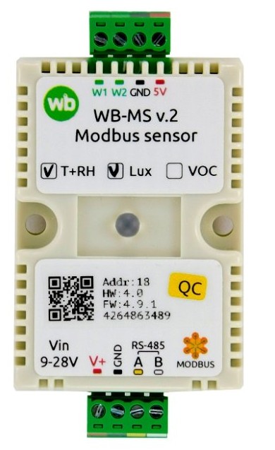 К датчику Wirenboard WB-MSW v.3 сенсоры 1-wire не подключить. Но есть ещё один датчик у Wirenboard: WB-MS v.2. Это вот такая штука: