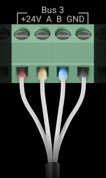 Проводные датчики — это отдельная линейка оборудования, дублирующая существующие беспроводные датчики по внешнему виду, но отличающаяся тем, что в датчиках нет батареек (они питаются от шины 24 вольта), а на базе расположен клеммник для подключения шины.