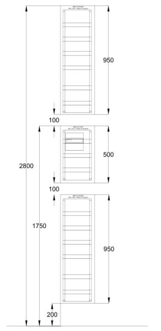 Добавил в свою анкету на проектирование вопрос о том, какой может быть максимальная ширина электрощита. Я раньше заранее этого не спрашивал, так как это не влияет на стоимость проектирования и требуется уже после выполнения плана кабелей, когда надо переходить к расстановке оборудования в щите, но оказывается, что по результатам обсуждения возможного вида щита щит может переехать в другое место относительно изначального, что потребует большой работы по перерисовке и пересчёту длины кабелей. Чем шире щит, тем он удобнее. Во-первых, удобнее заводить в него кабели, потому что их можно распределить по стене по большей площади. Удобнее будет развести друг от друга силовые и слаботочные кабели. Во-вторых, работать с более широким щитом гораздо комфортнее, потому что больше места. В узком щите образовывается неиспользуемое пространство за счёт того, что на рейке ещё есть место, но в него ничего не поставить. Ну, и если щит больше по ширине, значит, он меньше по высоте. Можно под щитом что-то разместить и над ним что-то разместить. И навряд ли монтажнику понравится, что нижняя рейка щита находится на высоте меньше метра, а верхняя выше двух. С другой стороны, электрощит не всегда находится в специально выделенном для него помещении, где в его распоряжении вся ширина стены. Обычно он находится в шкафу в прихожей или в кладовой, где хотелось бы уменьшить занимаемую ширину, чтобы в шкафу ещё осталось место для хранения. Я использую щиты ABB Comfortline, у них у навесных моделей есть такие варианты ширины: 300, 550, 800, 1050мм. Самый неприятный вариант — когда ширина стены, на которую планируется вешать щит, не дотягивает до 550мм, и приходится использовать щиты шириной 300мм. Щит CA16, который имеет ширину 300мм и высоту 950мм — это всего 72 DIN места, что для щита электрики и Умного Дома крайне мало. Для квартиры площадью около 100 квадратных метров в два таких щита мы сможем поместиться только если в квартире нет электросчётчика (это такая неприятная штука, которая занимает и свою DIN рейку, и рейку ниже него). И ещё хорошо бы, чтобы было однофазное питание. Но два щита высотой по 950мм означают, что они будут располагаться колонной от пола до потолка. Вот вариант размещения щитов (целых 3 штуки) из моего проекта. Как раз надо было уложиться в 300мм ширины, ещё и электросчётчик в квартире. В среднем щите помещается только электросчётчик, вводной автомат и реле напряжения. Далее питание расходится по двум другим щитам, в каждом свой кросс-модуль. Монтаж получается неудобным, эксплуатация тоже. Для доступа к нижним рейкам надо почти ложиться на пол, к верхним — вставать на стул. Справа и слева от щита, к счастью, остаётся ещё некоторое количество места для того, чтобы можно было вести кабели, которые заходят в нужный щит с нужной стороны. Слаботочные кабели (выключатели, шина CAN или Modbus) лучше завести так, чтобы они нигде не пересекались с силовыми. Например, разместить модули вводов и контроллер в верхнем щите наверху. В самый низ их лучше не опускать, потому что с ними ведётся мелкая кропотливая работа, они должны подключаться на удобной высоте. Если у нас есть 800мм ширины стены для размещения щита, то для слаботочных кабелей я обычно использую правую часть щита, которая за отдельной дверцей. Если у нас есть все 1050мм ширины, то удобнее использовать щит CA45, чём более узкий CA37. Даже допол