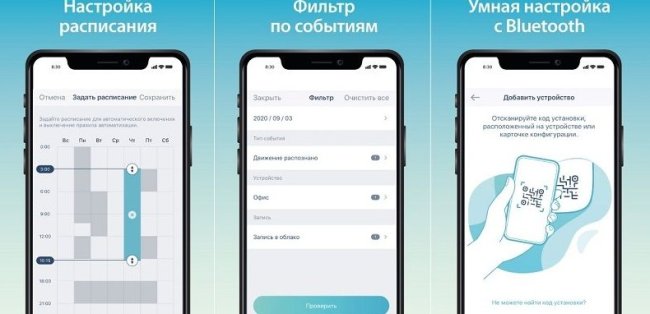 Приложение позволяет вести удаленное видеонаблюдение, задавать правила, сценарии и расписания работы устройств, получать уведомления о событиях и сохранять видеозаписи в облако.