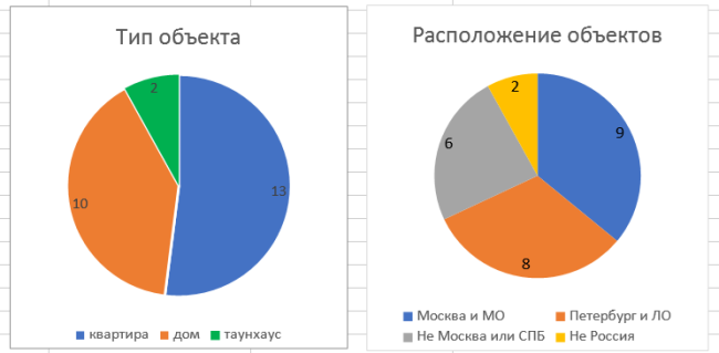 Как видно, никаких коммерческих помещений я до сих пор не проектирую, только частные. Санкт-Петербург и Москва со своими областями составляют бОльшую часть объёма проектирования, как и раньше.