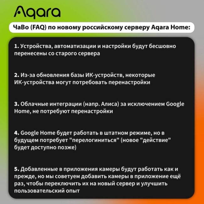 Проводятся плановые работы по запуску Московского сервера Aqara Home. Это позволит нам сделать сервис ещё более стабильным и быстрым.