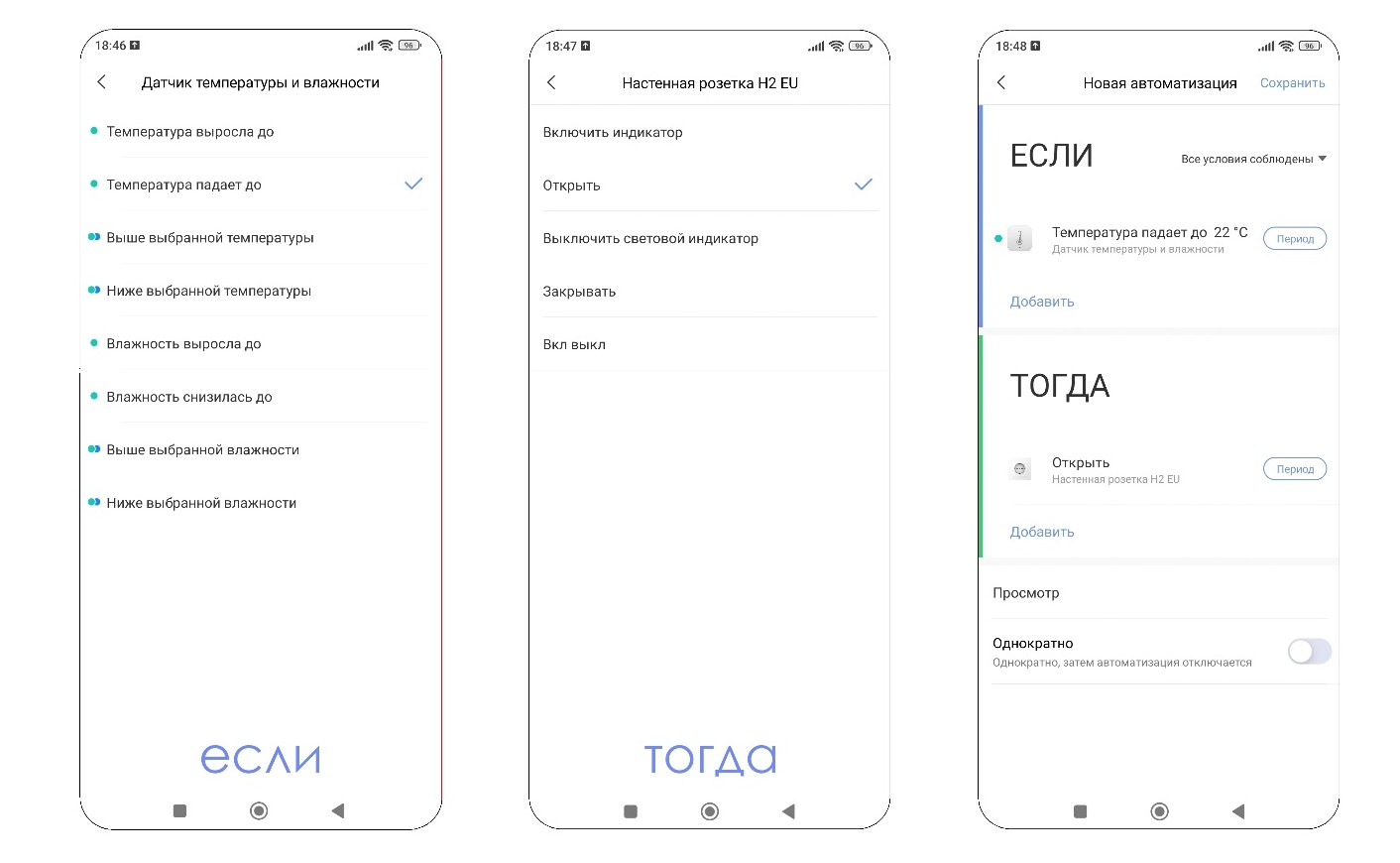 Все автоматизации работают на основе параметров «ЕСЛИ» и «ТОГДА». Простой пример работы такой автоматизации: «ЕСЛИ» температура упала ниже 23 °C, «ТОГДА» включить розетку (к которой подключён обогреватель).