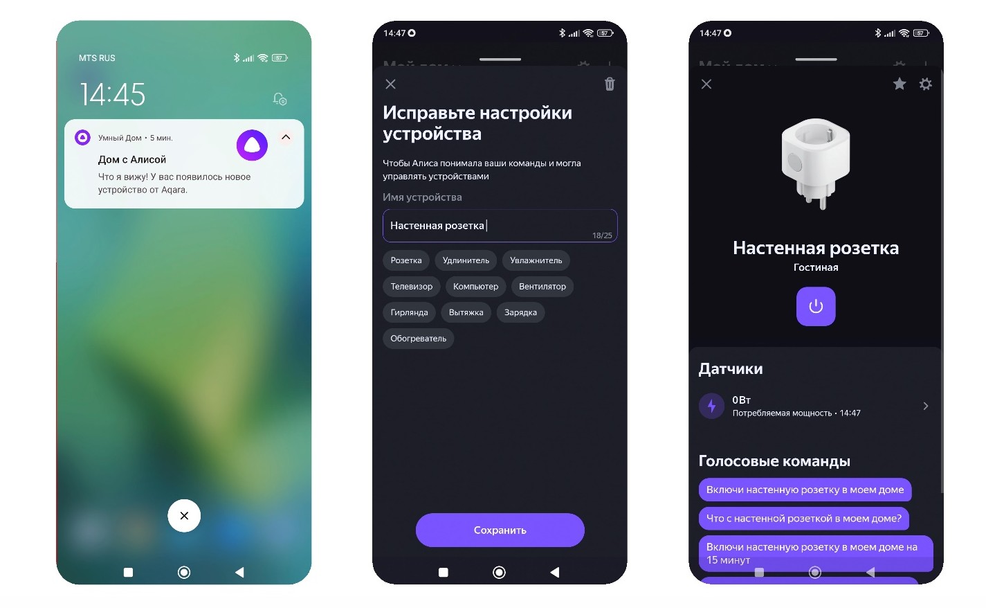 Добавление умной встраиваемой розетки Aqara Wall Outlet H2 EU в приложение Умный Дом с Алисой происходит в автоматическом режиме при условии, если ранее вы добавили Aqara в перечень интеграций.