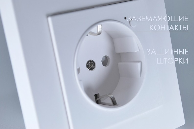 Розетка оснащена защитой от детей (шторками) и контактами заземления, которые повышают безопасность устройства, отводя напряжение в случае неисправности.