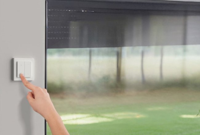 Две программируемые клавиши: левая для штор, правая как умная кнопка