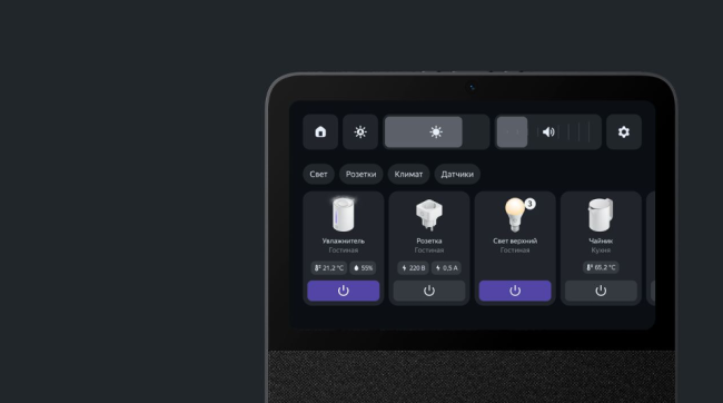 Новое устройство позволяет управлять умным домом. Например, можно попросить Алису включить свет или запустить робот-пылесос. Умный дисплей совместим с разными устройствами Xiaomi, от лампочек и датчиков до увлажнителей воздуха.