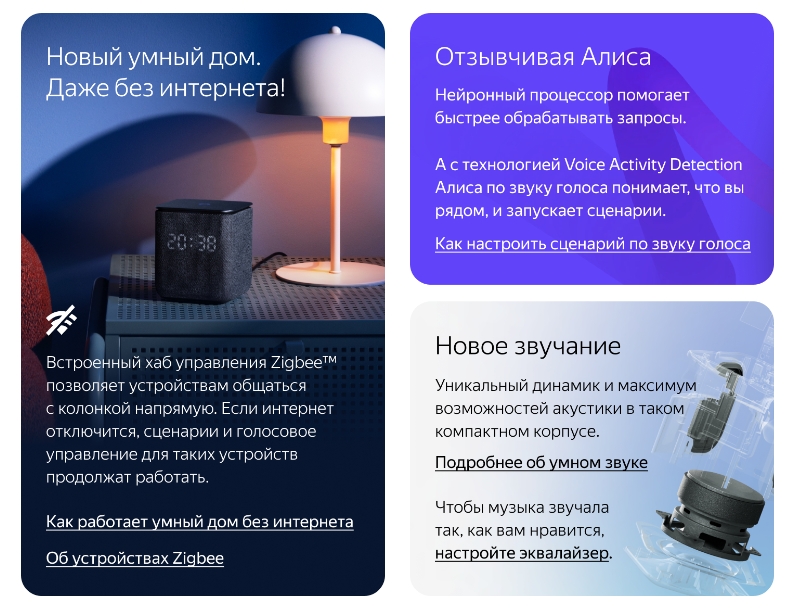 Первые шаги в этом направлении мы сделали весной, когда на Станциях со встроенным Zigbee-модулем и на Хабе Яндекса появились локальные сценарии. Например, умные лампочки могут загораться по сигналу от датчика движения, даже если пропал Wi-Fi.