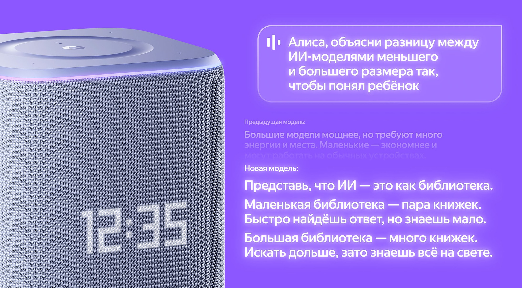 В умных устройствах и чате используются разные языковые модели. Это связано с тем, что модель нужно адаптировать под работу в умных устройствах. При этом нам важно, чтобы Алиса была везде одинаково полезна. Люди уже привыкли, что в чате могут решать с ней более комплексные задачи. Мы хотим, чтобы такой же уровень взаимодействия был и в умных устройствах.
