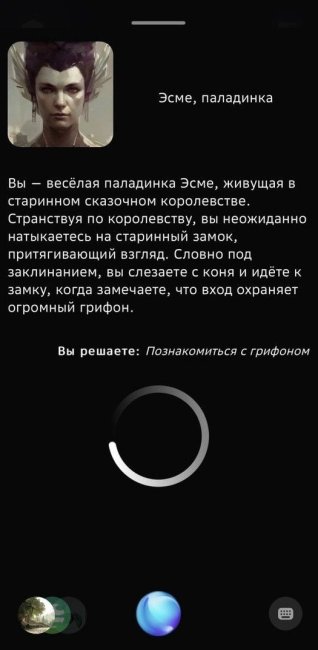 Пользователь путешествует по сгенерированной нейросетью истории и выбирает повороты сюжета из предложенных вариантов, а также может ввести свой вариант развития повествования. Рассказ генерируется после каждого выбора «на лету», формируя уникальную историю.