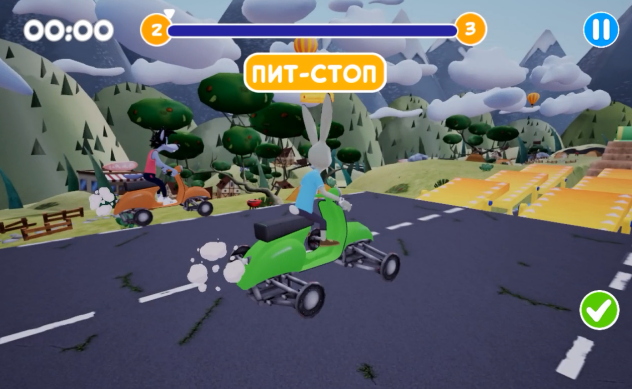 Игра ставит перед юным пользователем задачу, знакомую по мультфильму, — помочь Зайцу убежать от Волка. В «Ну, погоди. Гонки» игроку нужно рисовать на бумажных листах колёса к транспортному средству Зайца, чтобы помочь ему быстрее добраться до финиша. Специальное зеркало из набора Kidsar позволяет камере SberPortal «видеть» всё, что нарисовано на бумаге, и менять исходя из этого ход игры. Каждый уровень — это трасса с разными поверхностями дорог и препятствиями, и юному игроку нужно проанализировать, какой тип колёс нужно нарисовать под конкретную местность, чтобы транспорт зайца успешно преодолел все преграды и доехал до финиша. Задача помогает ребёнку развивать логику и понимание законов физики, а также сенсорное восприятие и навыки рисования.