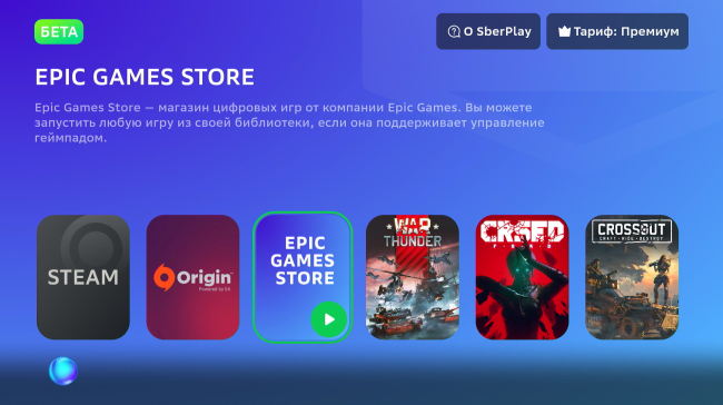 Для любителей компьютерных игр на SberBox Top есть сервис облачного гейминга SberPlay. Он позволяет играть в игры самых известных студий без мощного ПК. Игры запускаются на удалённых серверах, а SberPlay транслирует потоковое видео в Full HD-качестве на устройство. Даже смартфон можно использоваться в качестве контроллера — в приложении Сбер Салют для этого есть виртуальный геймпад.