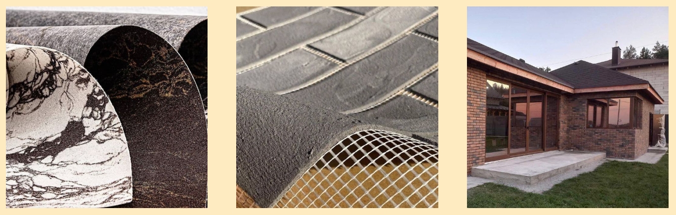 Инновационные облицовочные решения, такие как гибкий камень и мрамор, представляют собой высококачественные материалы. Они производятся из мраморной крошки или чистого кварцевого песка. Композиция включает акриловые полимеры для связки, а также, по желанию клиента, армирующую стеклоткань. Покупатели могут выбрать узоры или цвета из каталога, а также заказать индивидуальное оформление. Габариты гибких облицовочных листов могут варьироваться: стандартные плиты камня имеют размеры 60×90 см, в то время как мраморные листы — 295×90 см. Эти материалы идеально подходят как для внешнего оформления фасадов, так и для внутренней отделки помещений.