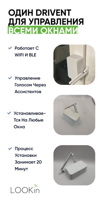 Бренды LOOKin и Drivent представляют новую версию устройства с поддержкой платформы LOOKin - LOOKin Drivent! ? Девайс имеет как функционал прошлых версий, так и новые свойства и улучшенные характеристики. С помощью этого устройства вы сможете управлять окном из любой точки мира ? Эксклюзивно для сообщества Sprut.ai доступен предзаказ LOOKin Drivent со скидкой в 15% по промокоду NODOUBT0923 (его нужно ввести при оформлении заказа). Промокод действует до 22 сентября. Отправка приводов начинается с 31 октября. Технические детали: Беспроводные технологии: Wi-Fi и Bluetooth. Работает с мобильным приложением LOOKin Hub. Интегрируется с Яндекс Алисой, Марусей, Google Home и Amazon Alexa. Поддерживает встроенные сценарии. Открытый HTTP/MQTT API Поддерживает MQTT Поддержка протокола Matter (совместимость с HomeKit) Предзаказ LOOKin Drivent доступен прямо сейчас со специальным промокодом для сообщества - NODOUBT0923, чтобы вы могли получить его первым и насладиться всеми преимуществами этого удивительного устройства. ??Гарантированная дата отправки заказа - 31 октября 2023.